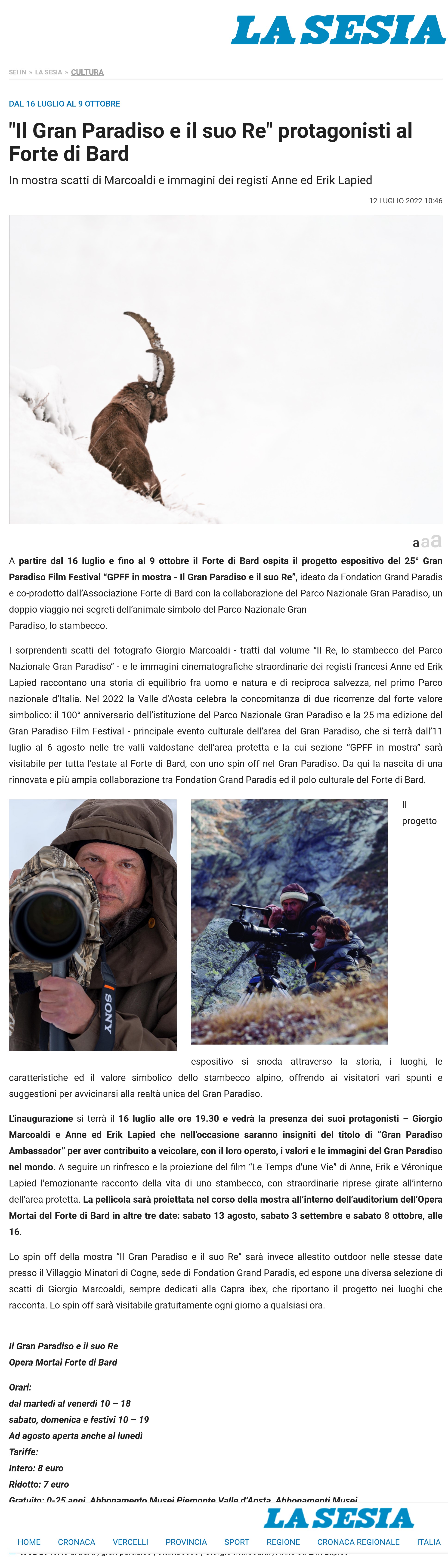 Forte di Bard - Il Gran Paradiso e il suo Re – Dalle vette al Forte di Bard arriva Gran Paradiso Film Festival in mostra