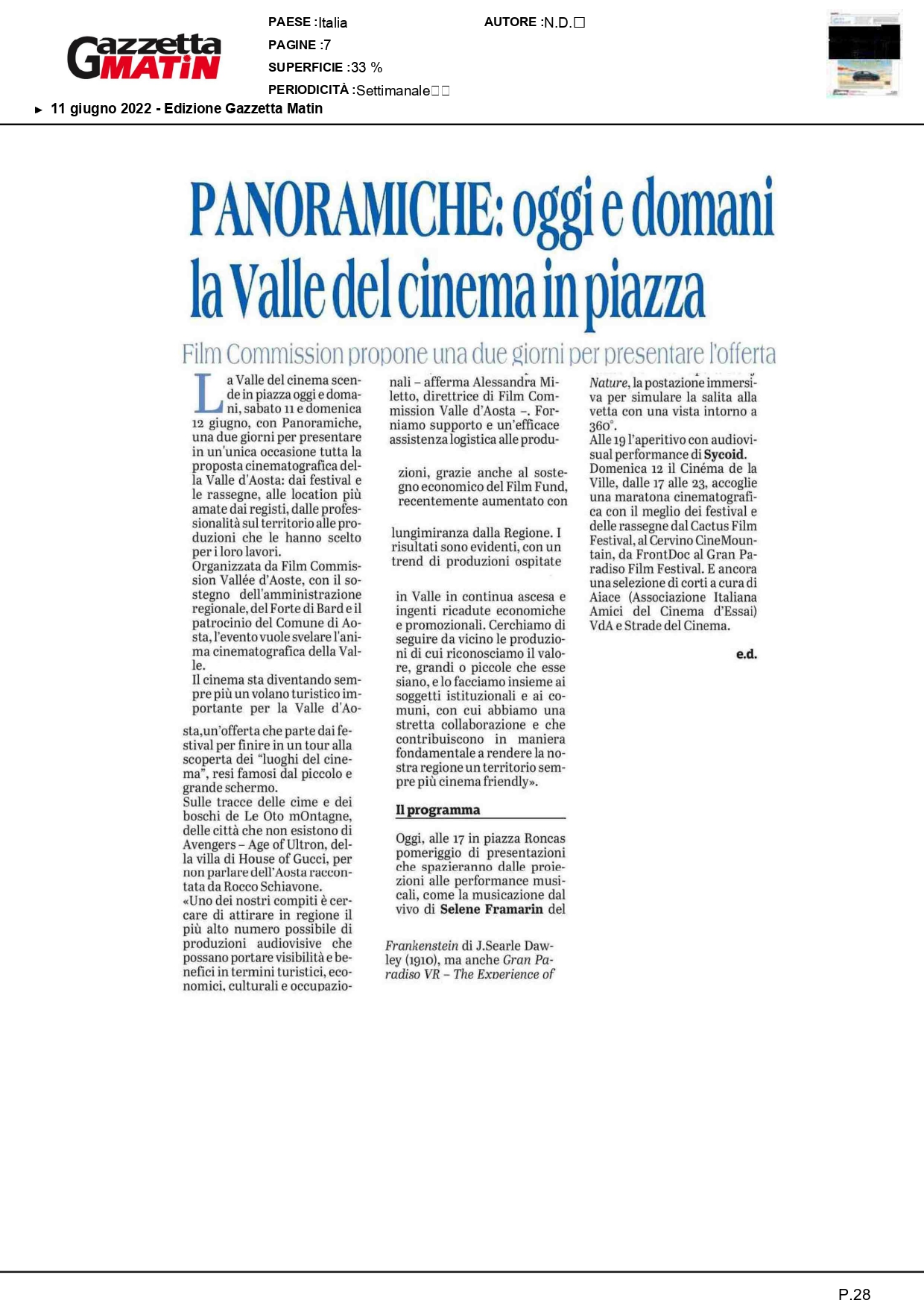 Panoramiche: oggi e domani la valle del cinema in piazza