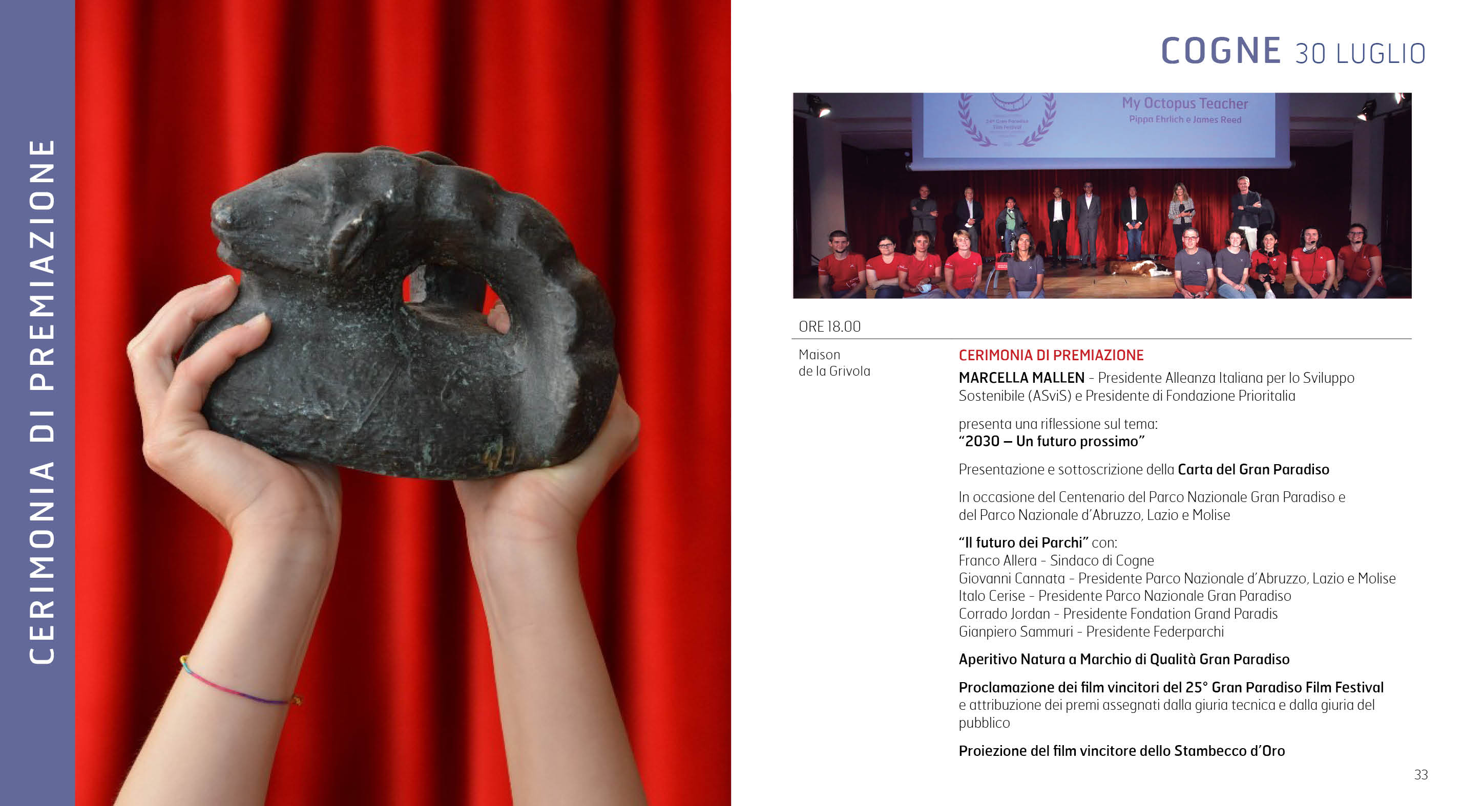 Proclamazione dei film vincitori del 25° Gran Paradiso Film Festival e attribuzione dei premi assegnati dalla giuria tecnica e dalla giuria del pubblico