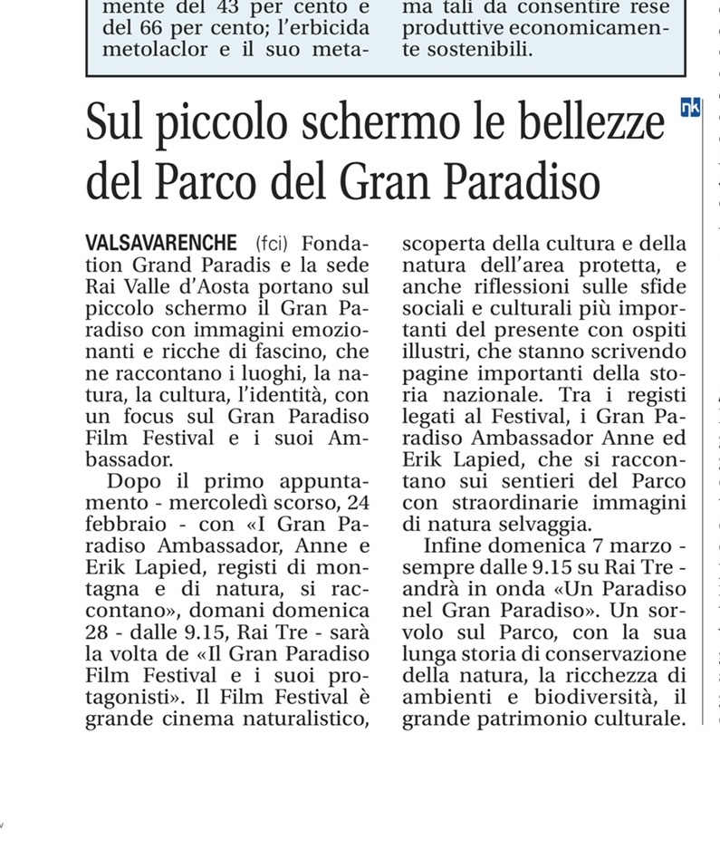 Sul piccolo schermo le bellezze del Parco del Gran Paradiso